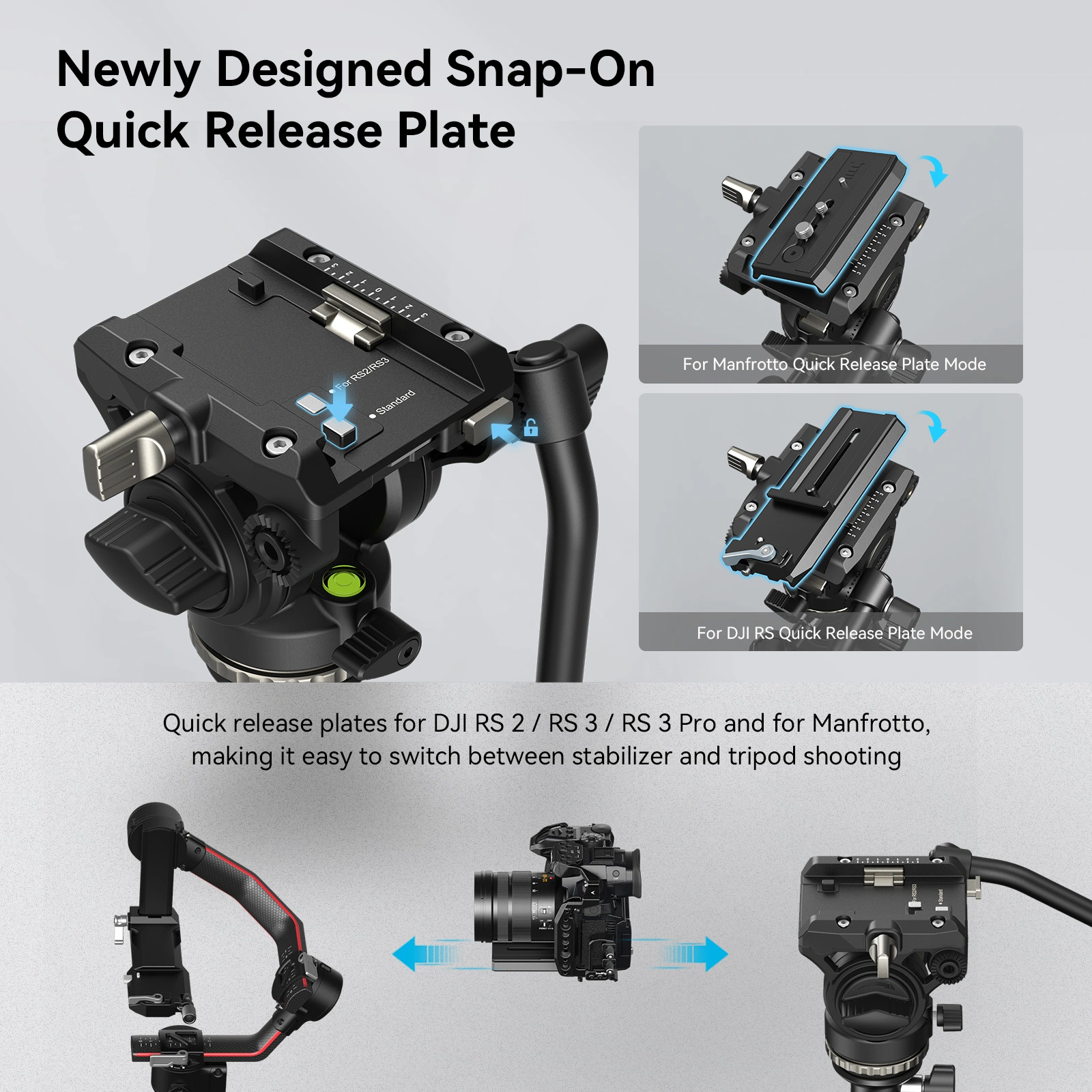 1. Cambio rápido: Permite alternar fácilmente entre placas de liberación rápida Manfrotto y DJI RS.
